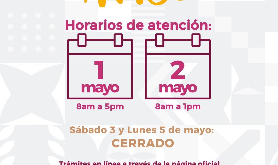Los días sábado 3 y lunes 5 de mayo las oficinas de recaudación y módulos Repuve permanecerán cerradas.