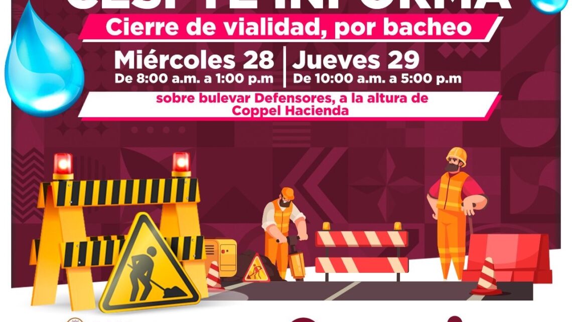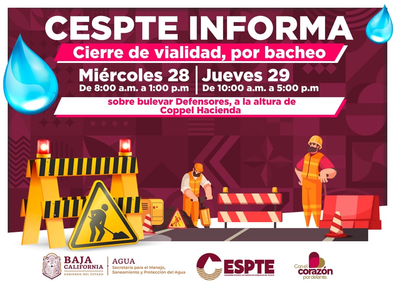 TECATE. – Con el objetivo de mejorar la infraestructura vial y garantizar la seguridad de los usuarios, la Comisión Estatal de Servicios Públicos de Tecate (CESPTE) informa que llevará a cabo labores de bacheo y perfilación sobre el bulevar Defensores, específicamente a la altura de la zona comercial Coppel Hacienda.