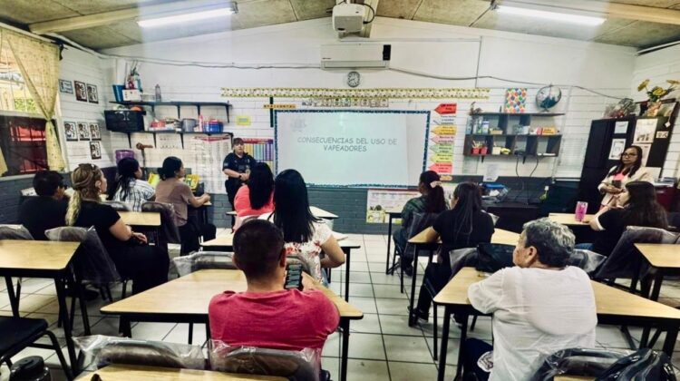 Alumnado y padres de familia de la Escuela Primaria Benito Juárez recibieron plática informativa sobre los riesgos del cigarro electrónico. Tecate, Baja California a 18 …