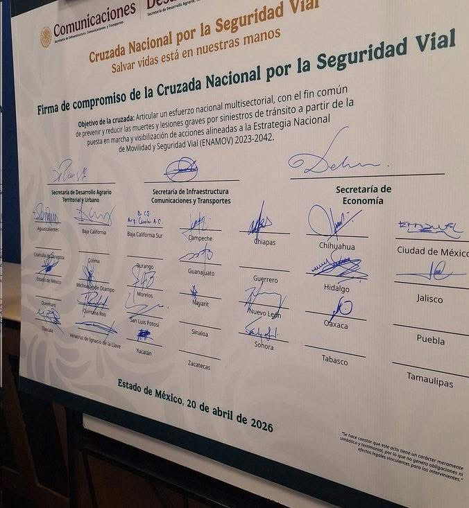 Un total de 22 estados firmaron dicho compromiso durante la Octava Sesión del Sistema Nacional de Movilidad y Seguridad Vial.