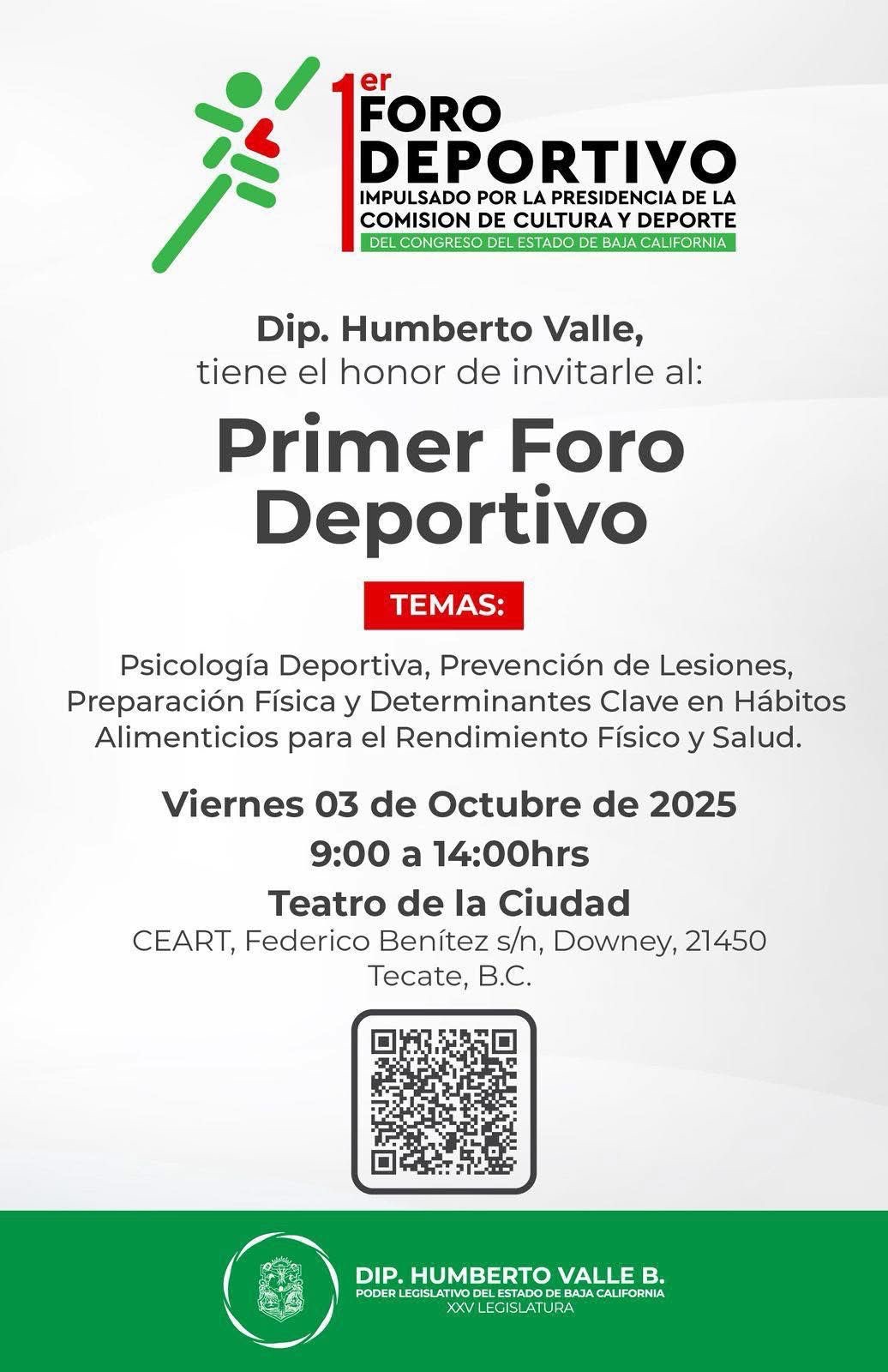TECATE A 01 DE OCTUBRE DEL 2025.- El diputado Beto Valle, presidente de la Comisión de Cultura y Deporte del Congreso del Estado, anunció la realización del Primer Foro Deportivo el próximo 3 de octubre en el Teatro de la Ciudad.
