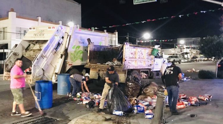 RECOLECTAN 10 TONELADAS DE BASURA •En un operativo de limpieza en la Zona Centro tras las Fiestas Patrias. Tecate, Baja California a septiembre del 2019.-Posterior …
