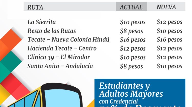 NUEVAS TARIFAS DE TRANSPORTE A PARTIR DEL 22 DE JULIO •Se exenta la ruta Tecate-Cerro Azul y Tecate- San Pablo, las cuales quedaron con la …