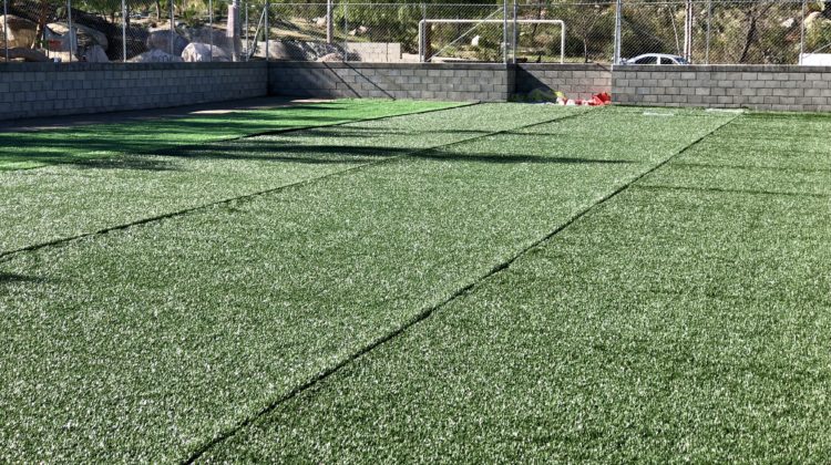 Colocan pasto sintético en campo infantil de Santa Anita