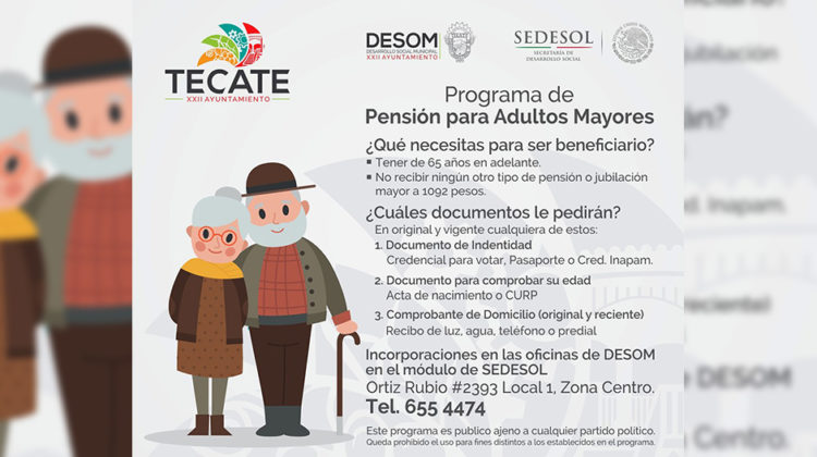 En apoyo al bienestar de las personas de la tercera edad, el Gobierno Municipal de Tecate y la Secretaría de Desarrollo Social (Sedesol), dan a …