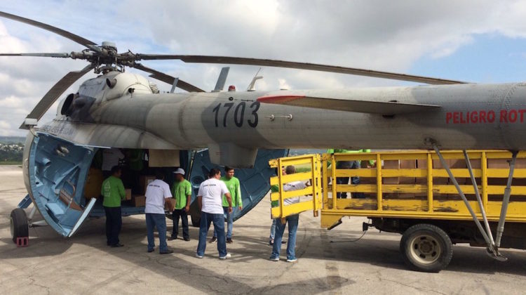 Un helicóptero de la Fuerza Aérea mexicana que viajaba al estado de Chiapas con ayuda para los afectados por el fuerte sismo registrado el jueves …