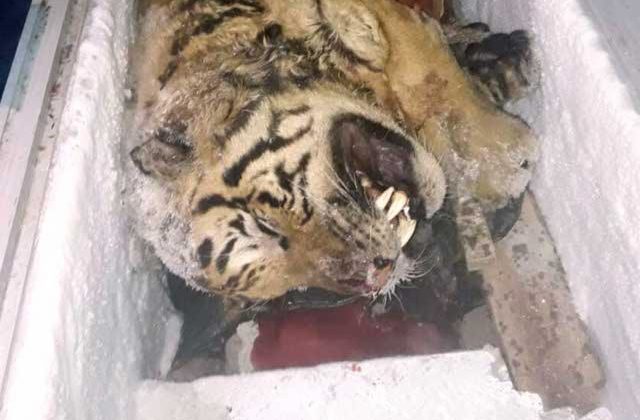 Los cinco tigres congelados, con su piel intacta, fueron hallados el lunes; los órganos y los huesos de los tigres se utilizan en la medicina …