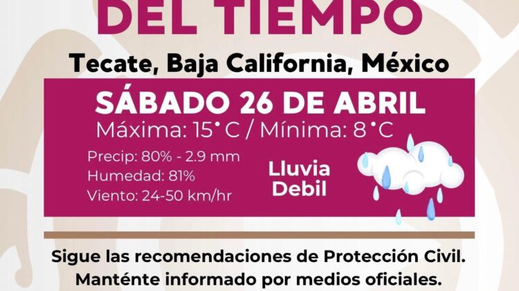 El Centro Municipal de Monitoreo y Operaciones de la Coordinación Municipal de Protección Civil y Bomberos informa, sobre el pronóstico del tiempo para el día …
