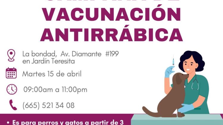 La jornada de vacunación para perros y gatos se realizará el martes 15 de abril en la colonia La Bondad. Tecate, Baja California a 08 …