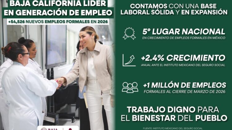 REGISTRA BAJA CALIFORNIA LA 5TA TASA MÁS ALTA DE GENERACIÓN DE EMPLEO A NIVEL NACIONAL: GOBIERNO DE MARINA DEL PILAR