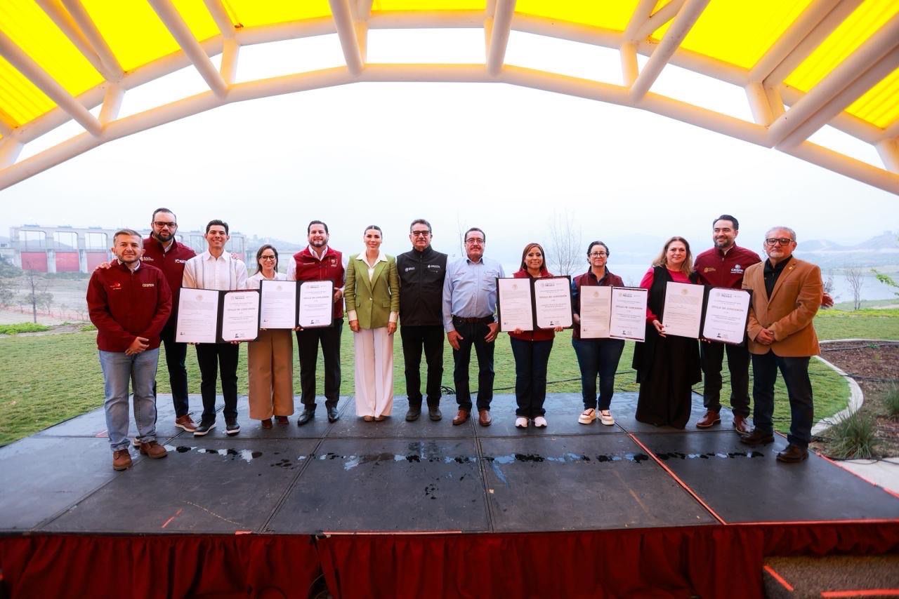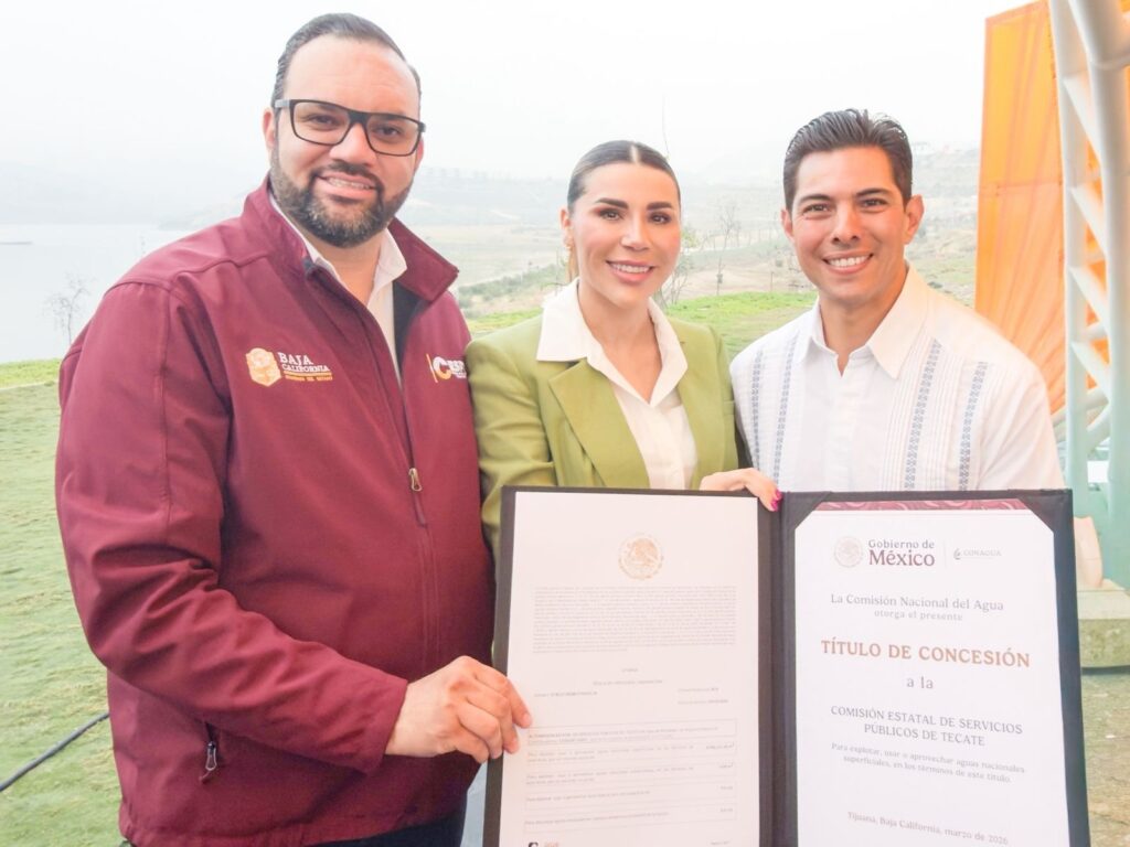 TECATE.- En enlace con la Presidenta Claudia Sheinbaum Pardo, el director de La Comisión Estatal de Servicios Públicos de Tecate (CESPTE), Alex Castro, acompañó a la Gobernadora Marina del Pilar, a recibir el título de asignación que incrementa sustancialmente el volumen de agua para el municipio. Esta acción, respaldada por la mandataria estatal en coordinación con la Presidenta de México, asegura que el recurso vital llegue de manera prioritaria a las familias tecatenses, fortaleciendo el abasto de agua potable para el «Pueblo Mágico».