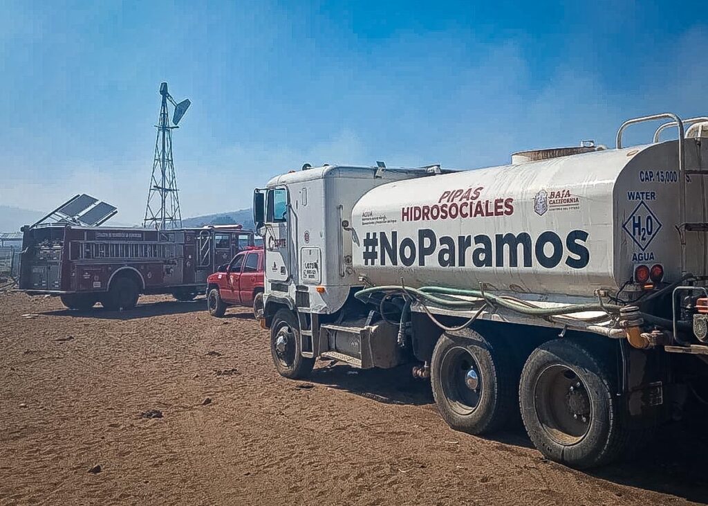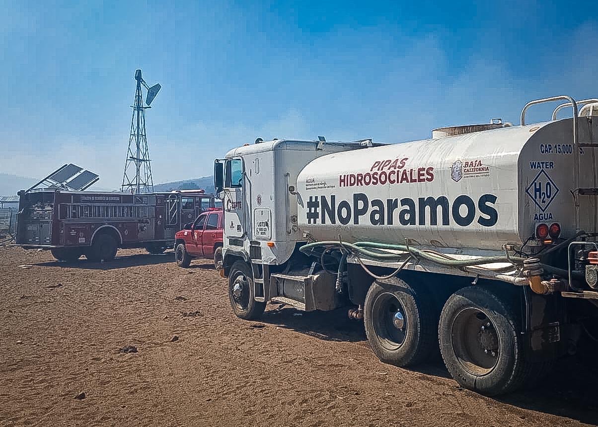 TECATE.- La Comisión Estatal de Servicios Públicos de Tecate (CESPTE) reafirma su compromiso con la ciudadanía y el heroico cuerpo de bomberos al brindar apoyo esencial en el combate de los incendios que afectan la zona del poblado de La Rumorosa. A través del despliegue de las Pipas Hidrosociales, se ha garantizado el suministro de agua necesario para enfrentar esta emergencia.