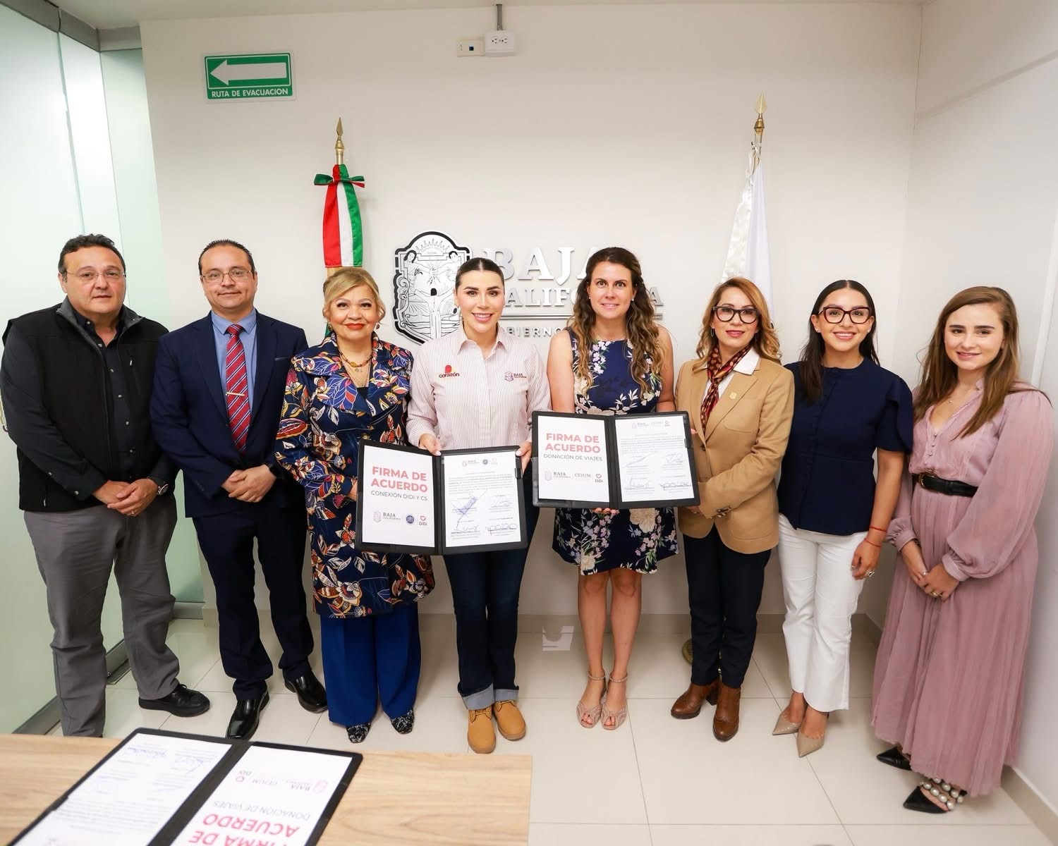 Tijuana.– Con el objetivo de brindar traslados más seguros y eficientes, la gobernadora de Baja California, Marina del Pilar Avila Olmeda, encabezó la firma de un convenio de colaboración con la empresa DiDi para integrar el botón de emergencia de la aplicación al Centro de Control, Comando, Comunicación y Cómputo (C5) del Estado.