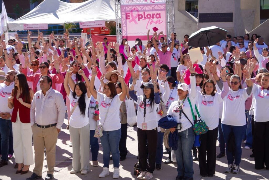 En este ejercicio de sensibilización, se convocó a mujeres de diferentes colonias en la capital del Estado así como en las jurisdicciones sanitarias, donde a través de una dinámica grupal se orientó sobre la importancia de la autoexploración como clave para la detección del cáncer de mama. Estas acciones impulsadas por el Gobierno de México, se llevaron a cabo en el marco de una mega jornada de servicios de salud para la mujer, encabezada por la Gobernadora Marina del Pilar Avila Olmeda y el Secretario de Salud, Adrián Medina Amarillas.