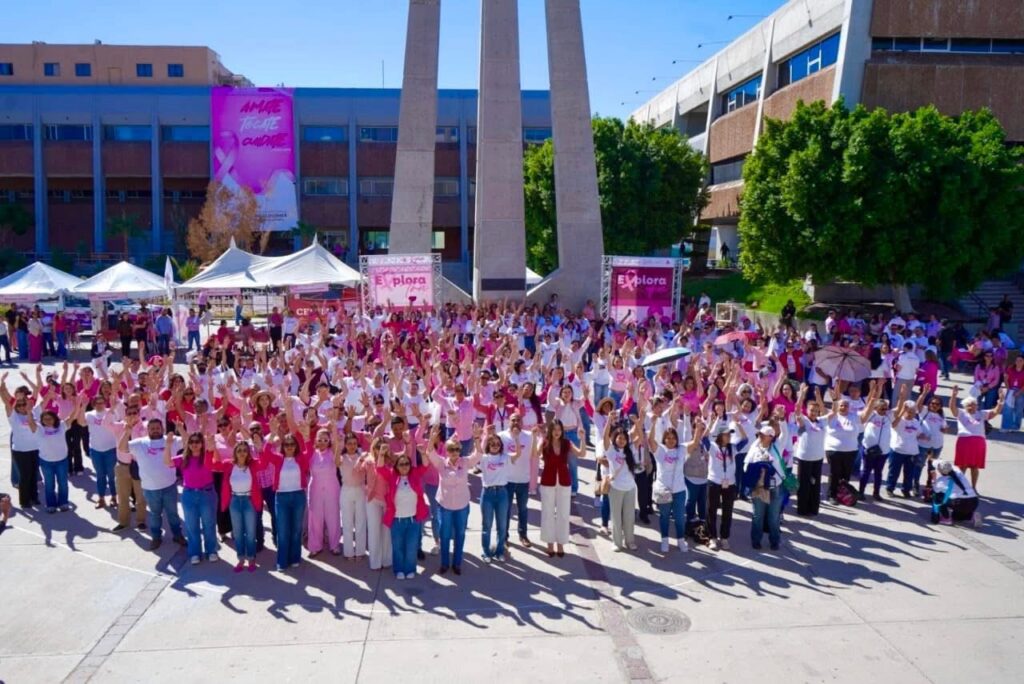 Mexicali, Baja California.- Con la participación de mujeres bajacalifornianas de todas las edades y personal de salud, se realizó la actividad de fomento de la autoexploración mamaria, como parte de la estrategia a nivel nacional, en conmemoración del Día Mundial de la Lucha contra el Cáncer de Mama, que se celebra este 19 de octubre.