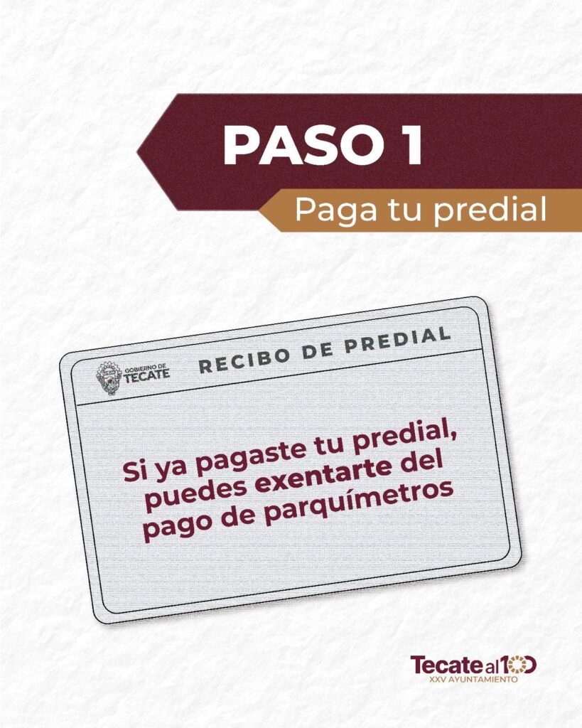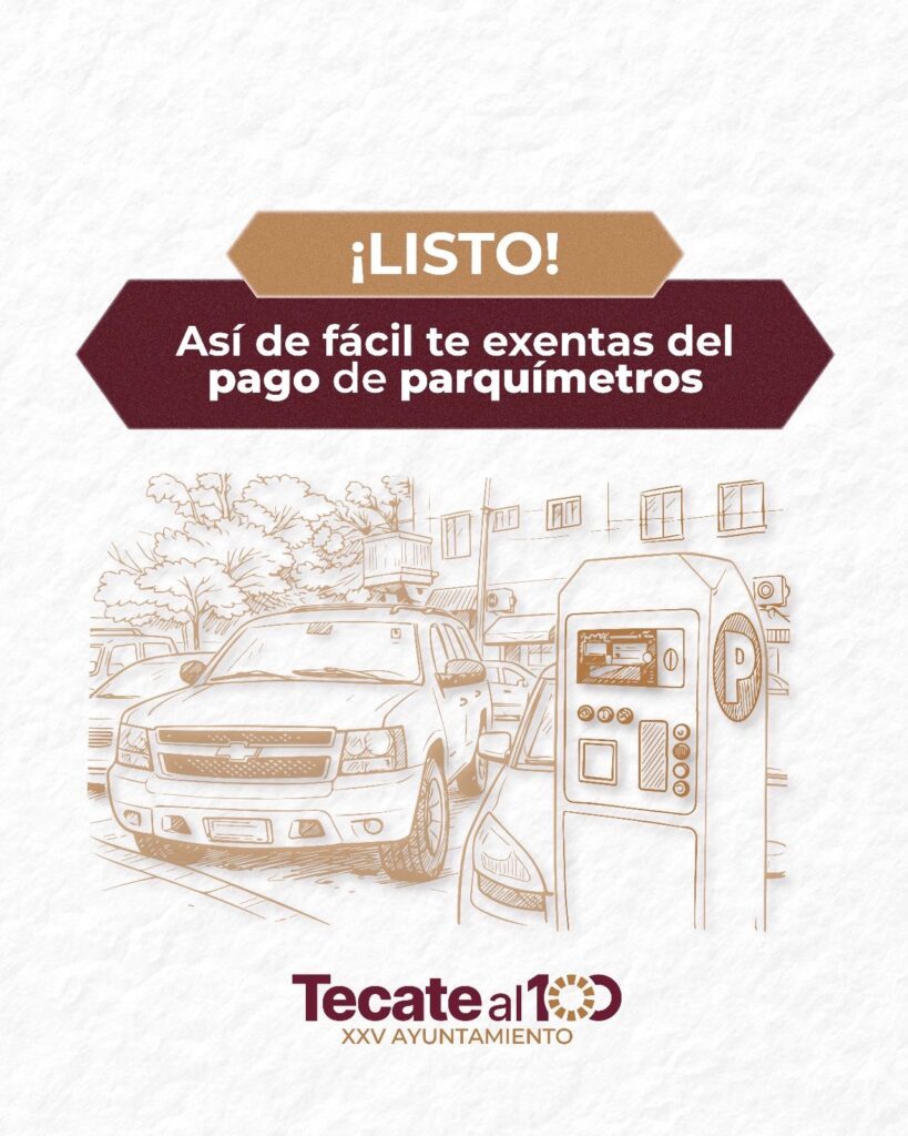 Tecate, Baja California a 23 de marzo de 2026.– En Tecate, cumplir sí vale la pena. El Gobierno Municipal invita a las y los ciudadanos a aprovechar el engomado de exención en parquímetros, un beneficio directo para quienes mantienen al día su pago de predial.