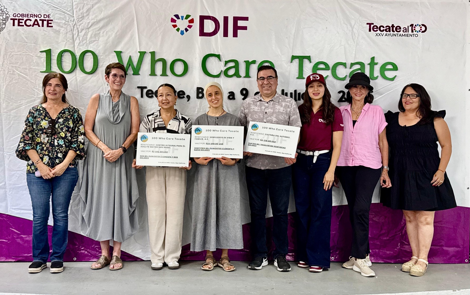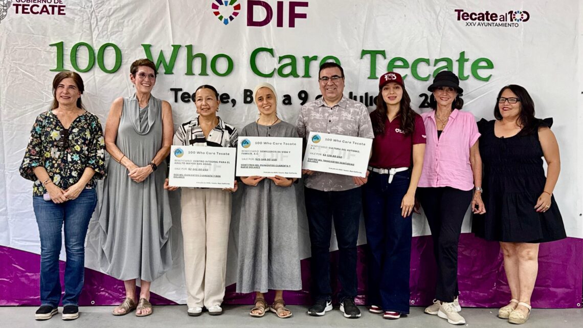 Tecate, Baja California a 10 de julio de 2025.– En un acto lleno de esperanza, generosidad y unión comunitaria, el Gobierno de Tecate, a través del Sistema Municipal DIF, fue sede de la segunda entrega de apoyos del programa internacional “100 Who Care Tecate”, una iniciativa ciudadana que ha llegado al municipio para fortalecer a las organizaciones de la sociedad civil y multiplicar el impacto social desde lo local.