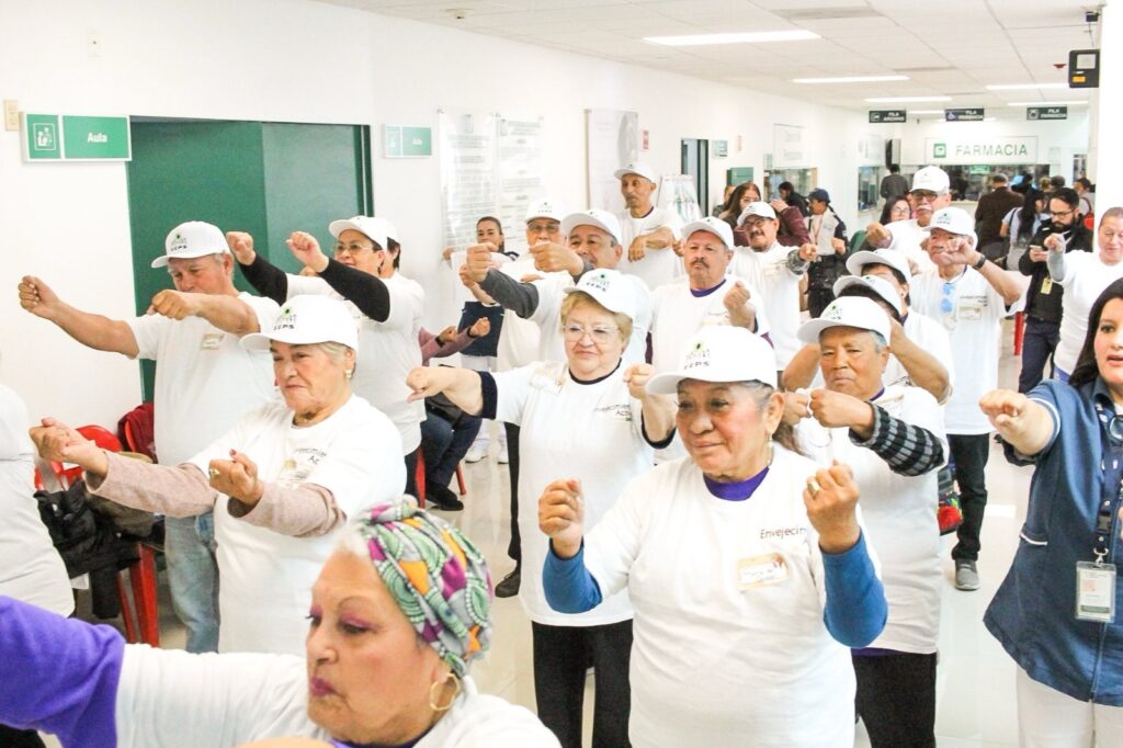 La jornada, impulsada por la Coordinación de Trabajo Social del IMSS Baja California a través del programa de Envejecimiento Activo, reunió a grupos de personas adultas mayores que participaron en dinámicas llenas de movimiento, convivencia y bienestar, fortaleciendo su salud física, emocional y social.