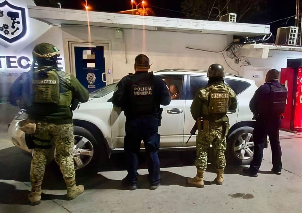 Derivado del seguimiento, elementos municipales interceptaron el vehículo sobre bulevar Encinos, a la altura del parque Encinos, donde fueron asegurados dos tripulantes que dijeron llamarse Omar N., de 22 años, y Luis N., de 25 años de edad, ambos con domicilio en la ciudad de Tijuana, a quienes se les informaron sus derechos constitucionales conforme a los protocolos policiales.