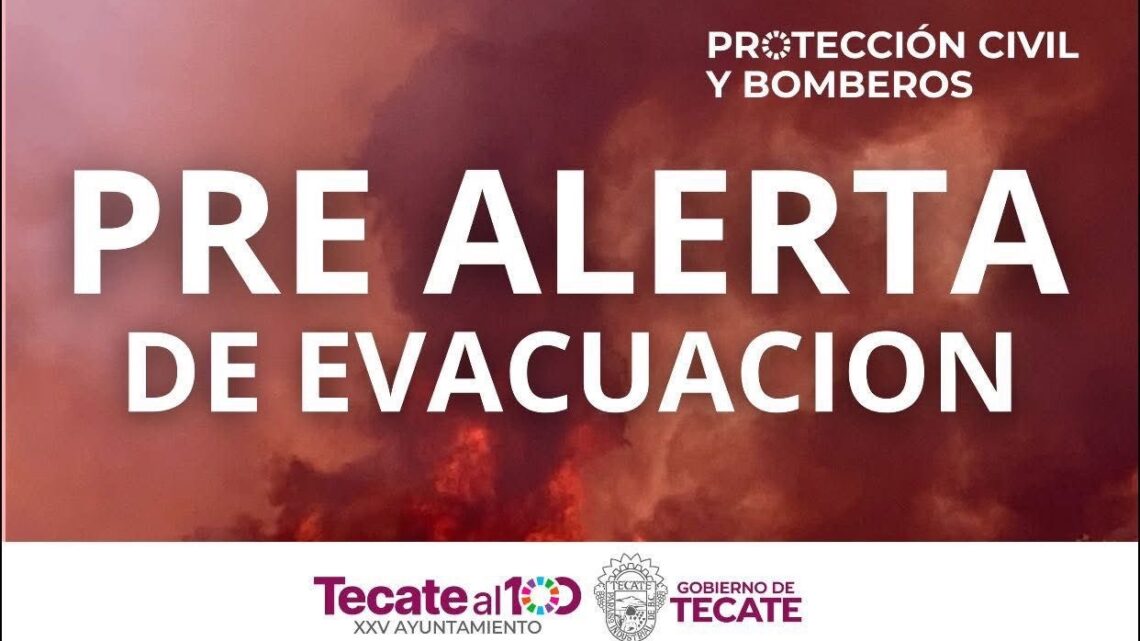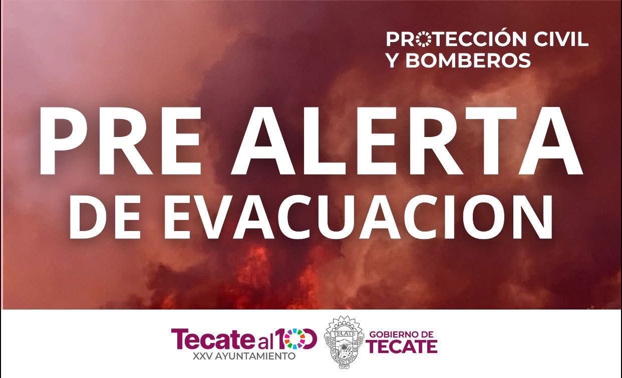 Tecate, Baja California a 27 de junio de 2025.- El Gobierno de Tecate, a través de la Coordinación Municipal de Protección Civil y Bomberos, informa a la comunidad que se ha emitido una pre alerta de evacuación debido al incendio forestal que actualmente afecta la zona de La Rumorosa y sus alrededores.