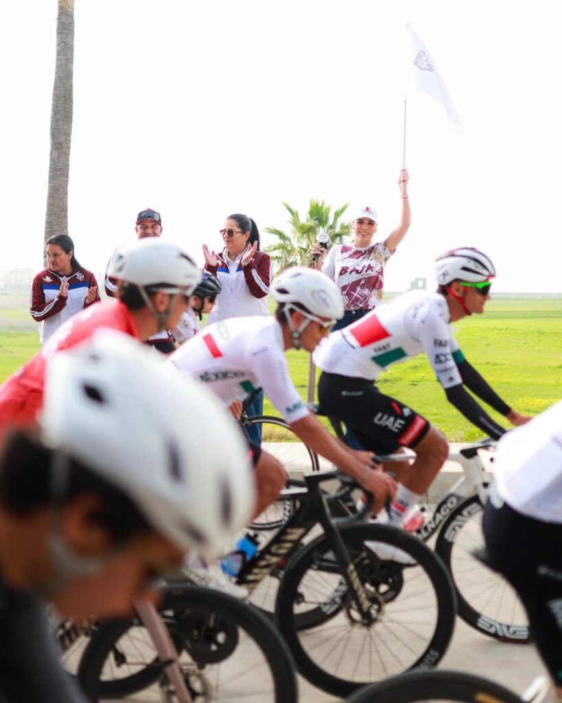 Playas de Rosarito.– En apoyo a ciclistas de la entidad que se preparan para competir en el deporte de alto rendimiento, la gobernadora Marina del Pilar Avila Olmeda encabezó la Rodada Nacional de Inicio de Año 2026 en el Baja California Center, circuito de 20 kilómetros en el que participaron los reconocidos ciclistas ensenadenses Isaac del Toro, Eder Frayre y David Ruvalcaba.