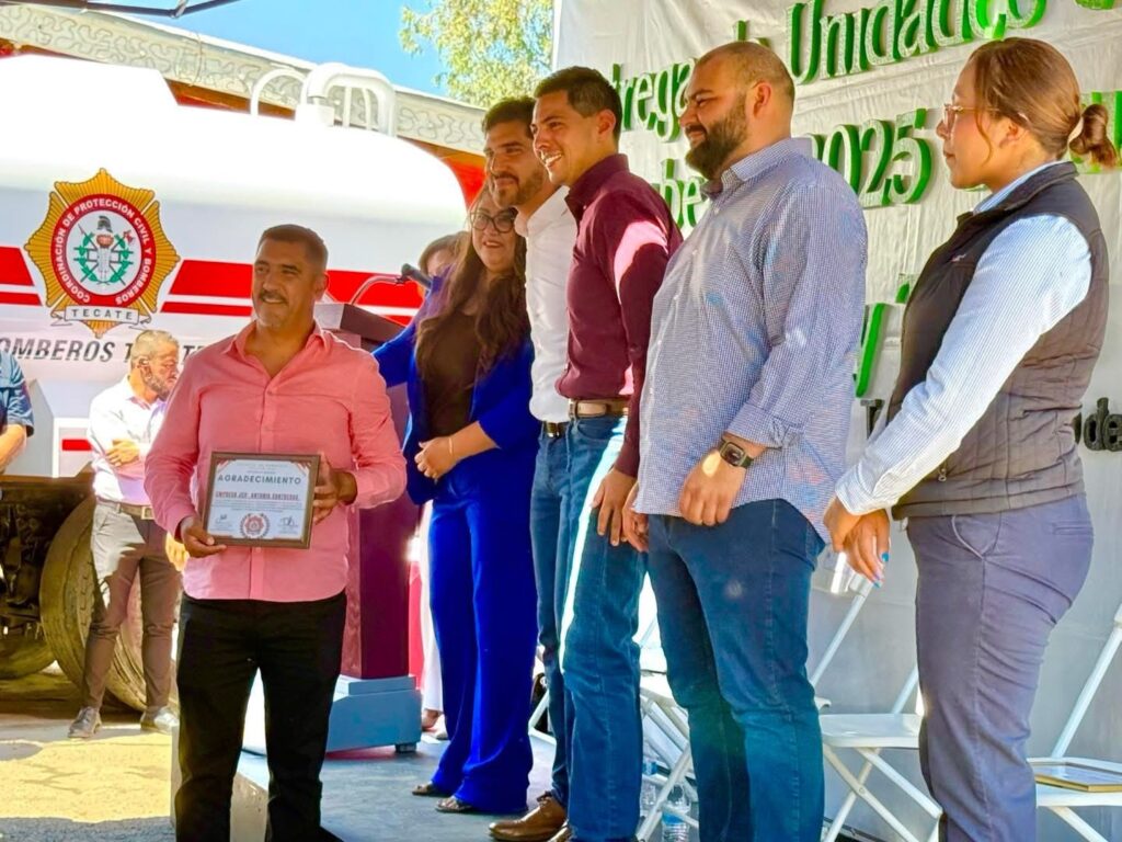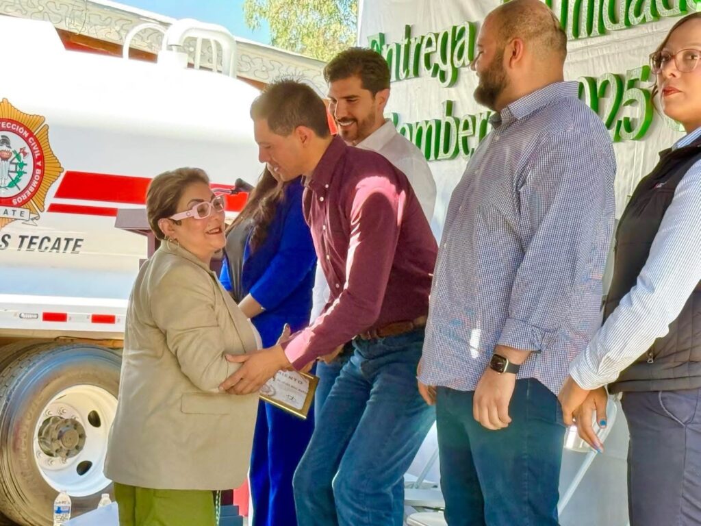 Tecate, Baja California.– En un emotivo acto celebrado en la estación central, el H. Cuerpo de Bomberos de Tecate recibió una unidad de rescate y una pipa de agua, fruto del esfuerzo colectivo logrado a través de la Colecta 2025. Esta iniciativa ciudadana reunió la voluntad de empresas, comercios, regidores, diputadas, diputados y la comunidad en general para fortalecer la labor de quienes arriesgan su vida diariamente por la seguridad de Tecate.