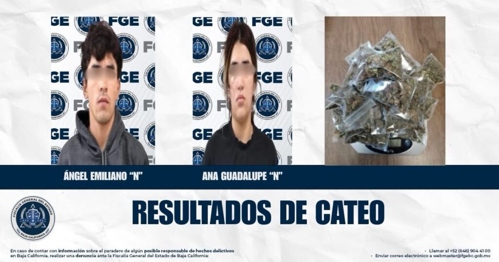 El cateo, efectuado el pasado 25 de junio, fue encabezado por el Ministerio Público y su auxiliar, con apoyo de cuatro agentes de la Agencia Estatal de Investigación (AEI). Durante la diligencia se encontraron en el domicilio a Ana Guadalupe “N” y Ángel Emiliano “N”, quienes estaban en posesión de 15 envoltorios de plástico que contenían una sustancia con características similares a la marihuana.