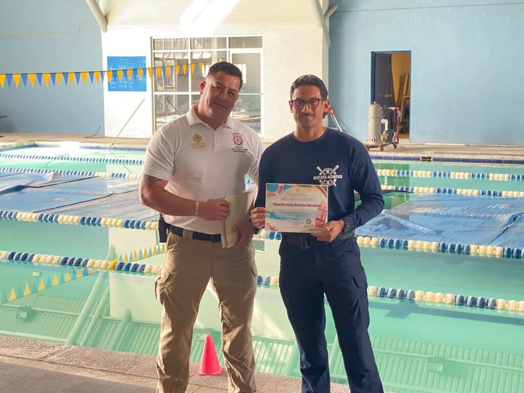 Dicha capacitación fue impartida por el Instructor Josué Quintero, destacado profesional con amplia experiencia como salvavidas, bombero e instructor, además de desempeñarse en el área de Protección Civil en Rosarito. Su trayectoria, conocimientos y vocación de servicio fueron fundamentales para el desarrollo de esta importante jornada de formación.