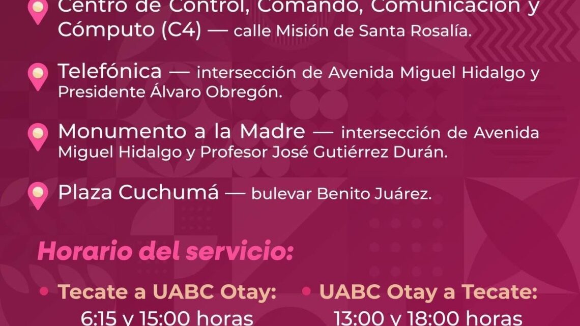 • Tecate a UABC Campus Otay: 6:15 a.m. y 3:00 p.m.