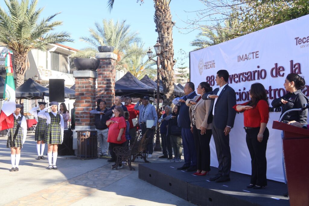 Tecate, Baja California a 18 de marzo de 2026.– En el marco del 88 aniversario de la Expropiación Petrolera, el Gobierno de Tecate, a través del Instituto Municipal de Arte y Cultura y la Coordinación de Fomento Cívico, llevó a cabo una emotiva ceremonia cívica para honrar uno de los acontecimientos más significativos en la historia de México, símbolo de soberanía, justicia social y dignidad nacional.