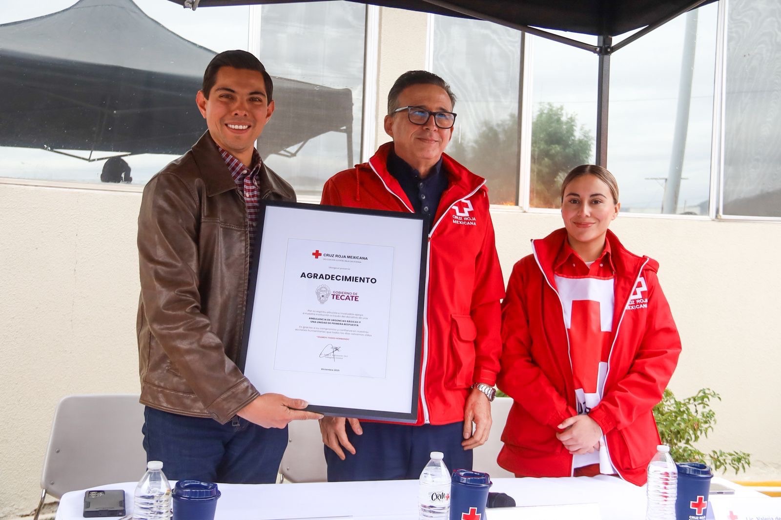 Durante el acto, el alcalde reconoció el liderazgo y la labor que ha venido realizando la Cruz Roja en Tecate, destacando que el trabajo constante de su equipo ha sido clave para mejorar la atención a la comunidad, aún con los retos que enfrenta la institución, especialmente reconoció la labor de Jorge Aztiazarán, delegado de Cruz Roja Mexicana en Baja California.