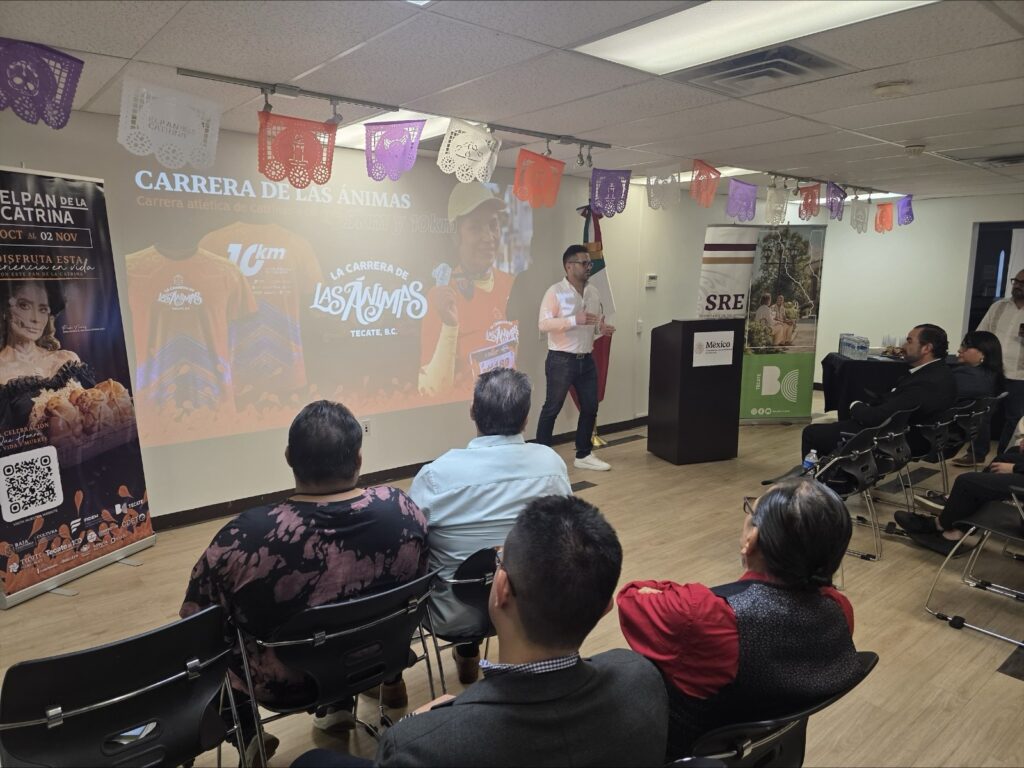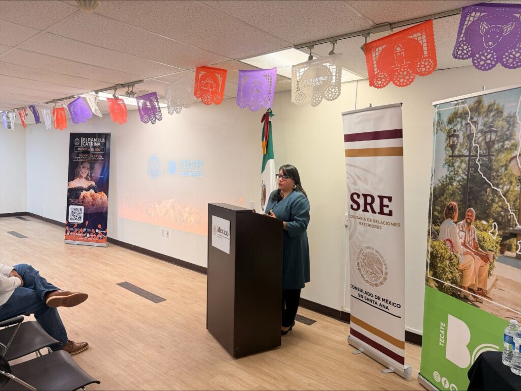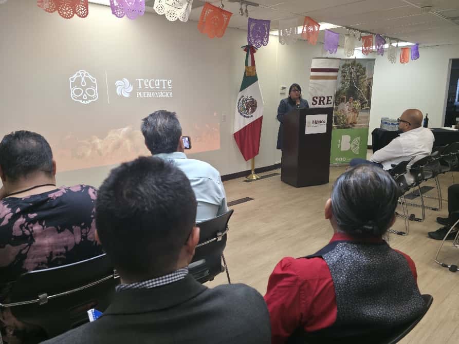 Tecate, Baja California a 24 de octubre de 2025.– El Gobierno de Tecate, a través de la Jefatura de Relaciones Públicas y Asuntos Binacionales, participó en la presentación del tradicional “Pan de la Catrina” en coordinación con el comité organizador del evento, llevada a cabo en el Consulado de México en Santa Ana, California.