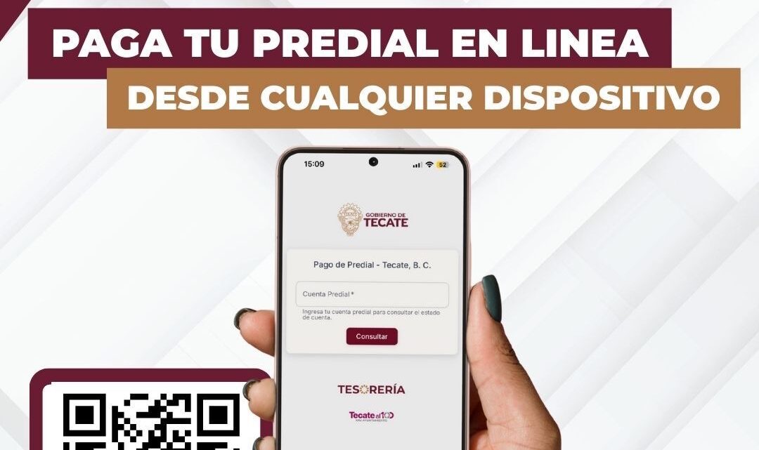 Tecate, Baja California, a 15 de enero de 2026.– El Gobierno Municipal de Tecate informa a la ciudadanía que a partir de hoy ya se encuentra habilitado el pago del impuesto predial en línea, una opción práctica, segura y disponible las 24 horas del día.