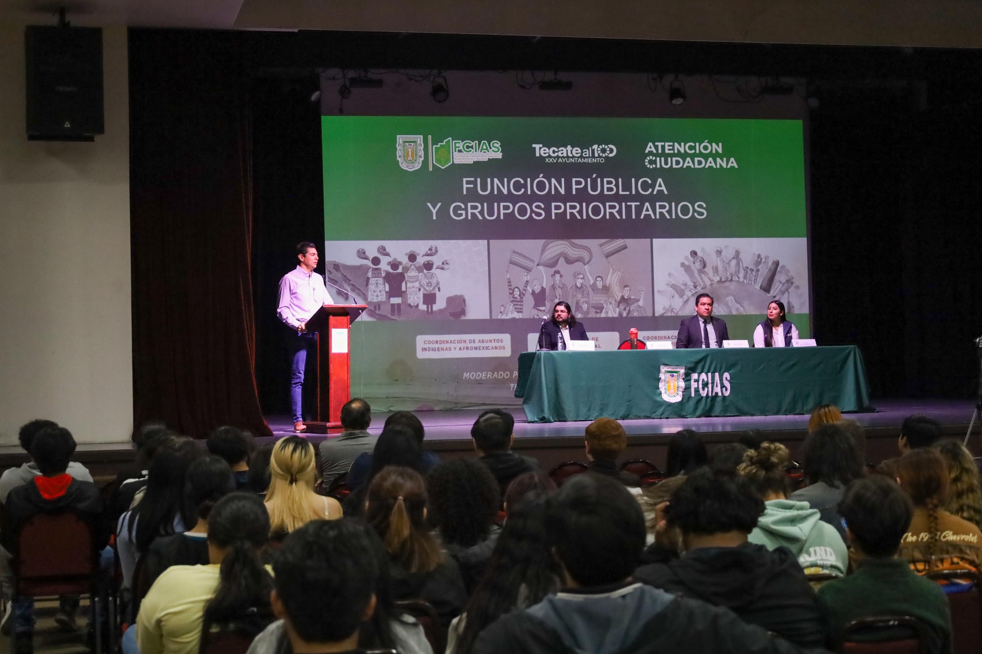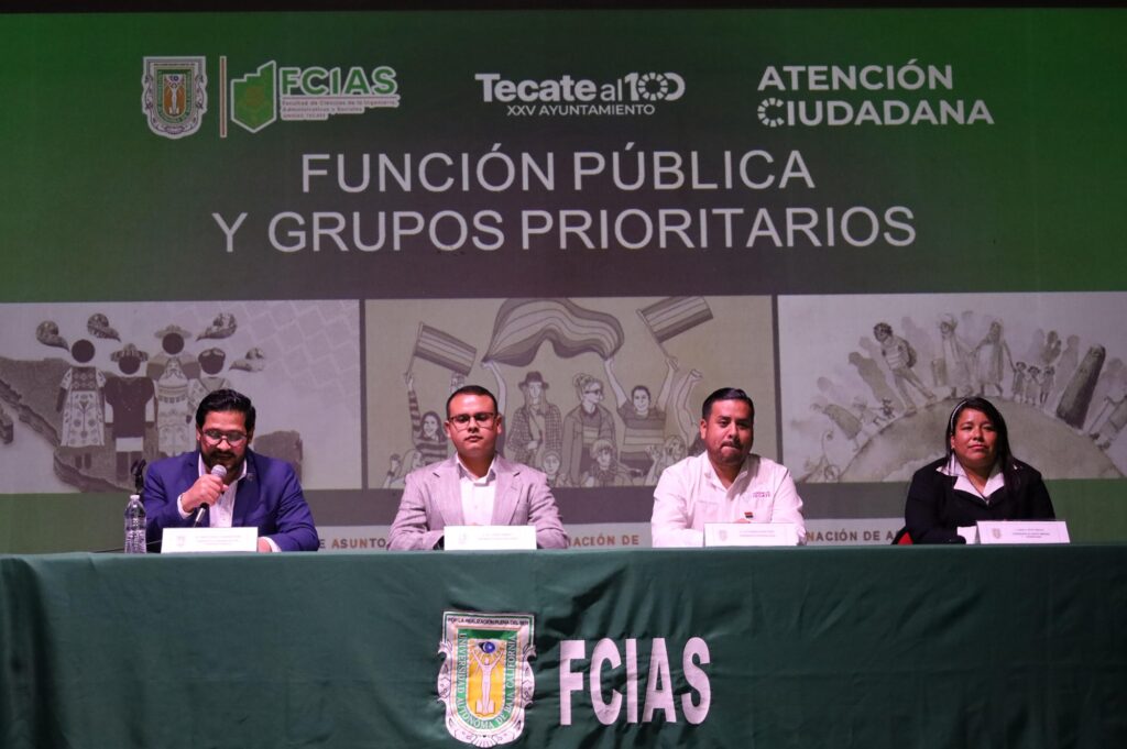 Tecate, Baja California a 02 de marzo de 2026.- Para generar un espacio de diálogo, análisis y reflexión, se llevó a cabo el foro “Función Pública y Grupos Prioritarios”, organizado por la Facultad de Ciencias de la Ingeniería, Administrativas y Sociales de la Universidad Autónoma de Baja California (UABC), en coordinación con la Dirección de Atención Ciudadana y Grupos Prioritarios del Gobierno de Tecate.