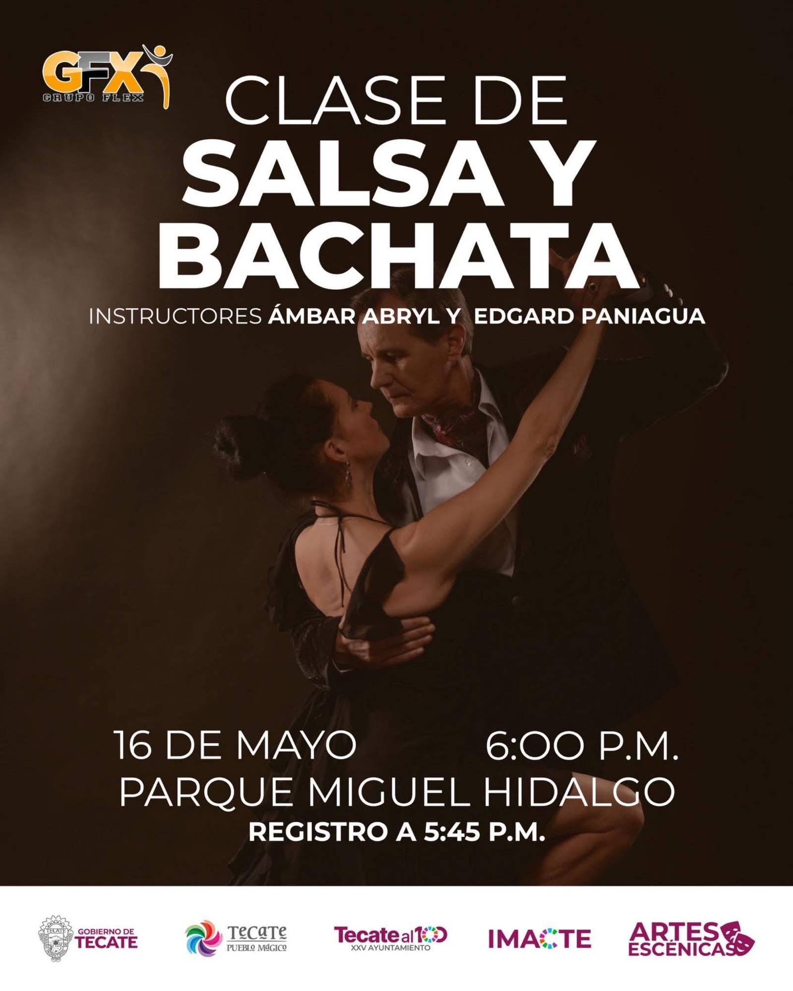 Tecate, Baja California a 14 de mayo de 2025.-El Gobierno de Tecate, a través del Instituto Municipal de Arte y Cultura de Tecate (IMACTE), invita a todas y todos los tecatenses a disfrutar de una noche llena de ritmo, movimiento y alegría con la clase gratuita de salsa y bachata, que se llevará a cabo el próximo jueves 16 de mayo a las 6:00 p.m. en el Parque Miguel Hidalgo.