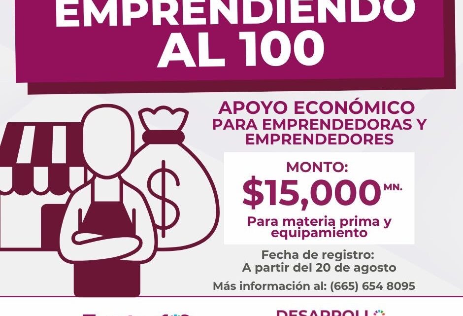 Tecate, Baja California, a 20 de agosto de 2025. – Con el objetivo de impulsar la economía local y respaldar a quienes inician o fortalecen sus proyectos productivos, el Gobierno de Tecate, a través de la Dirección de Desarrollo Económico, anunció la apertura de la convocatoria del programa “Emprendiendo al 100”, dirigido a emprendedoras y emprendedores del municipio.