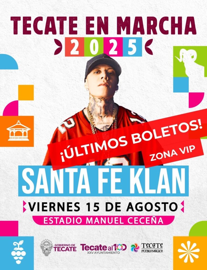 Tecate, Baja California, a 15 de agosto de 2025. – Este viernes, la Feria Tecate en Marcha 2025 vivirá una de sus noches más esperadas con la presentación estelar de Santa Fe Klan, ícono de la música urbana en México, quien promete encender el escenario Tecate al 100 con un espectáculo inolvidable para miles de asistentes.