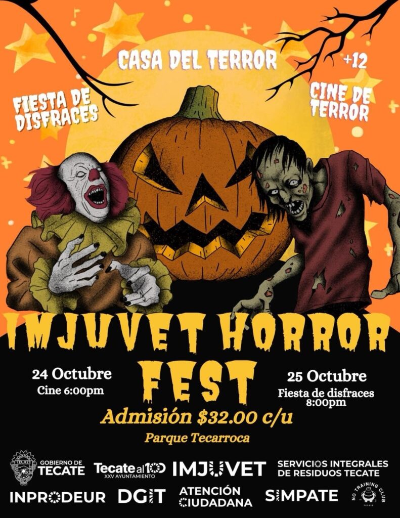 Tecate, Baja California a 14 de octubre de 2025.- El aire se llena de misterio, las sombras cobran vida y el Parque Tecarroca se prepara para abrir sus puertas al evento más aterrador del año, el IMJUVET Horror Fest 2025, que llega para hacer gritar, reír y estremecer a las juventudes tecatenses, en dos noches donde el miedo se mezcla con la diversión.
