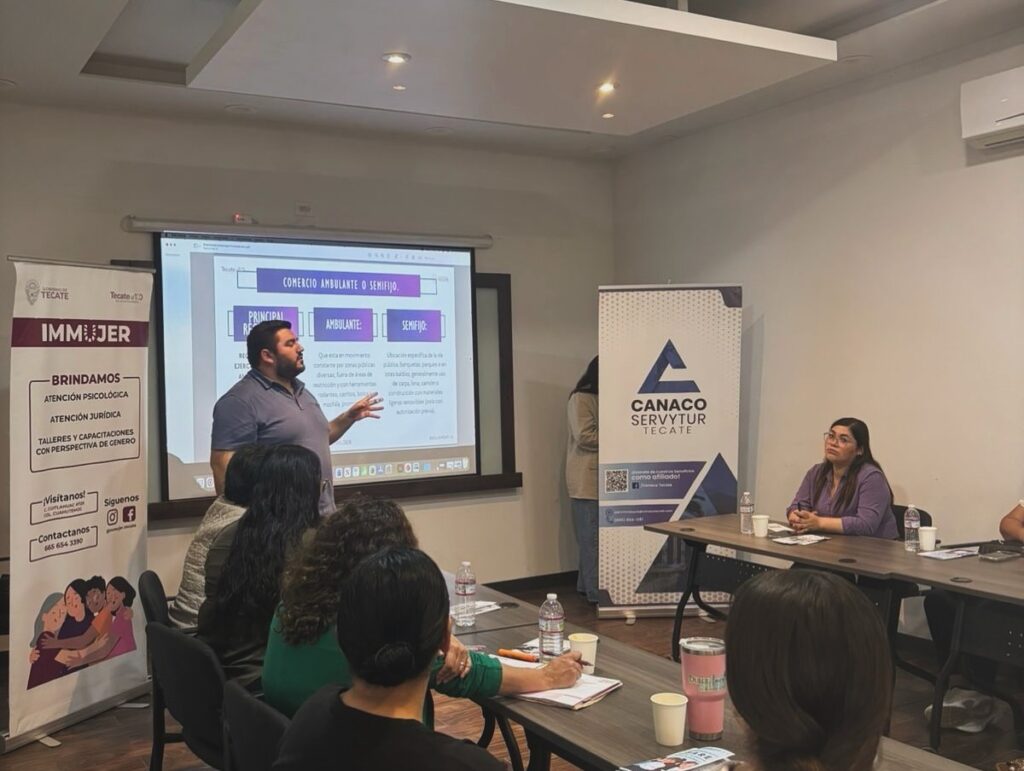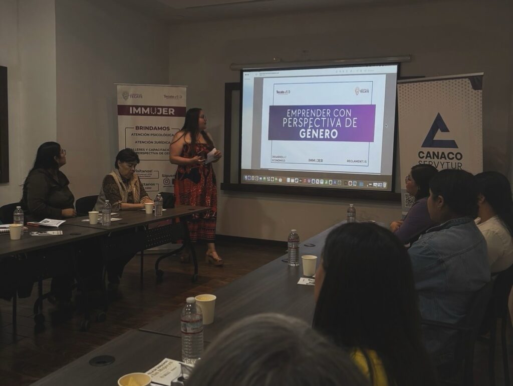 Tecate, Baja California a 29 de octubre de 2025.– Con el firme compromiso de seguir generando espacios de crecimiento y desarrollo para las mujeres tecatenses, el Instituto Municipal de la Mujer (IMMUJER), en colaboración con la Dirección de Desarrollo Económico y la Coordinación de Reglamentos Municipales, llevó a cabo el taller “Técnicas y Dinámicas para el Empoderamiento; servicios con perspectiva de género”, en las instalaciones de CANACO Tecate.