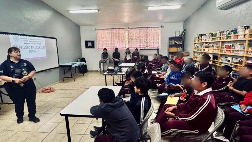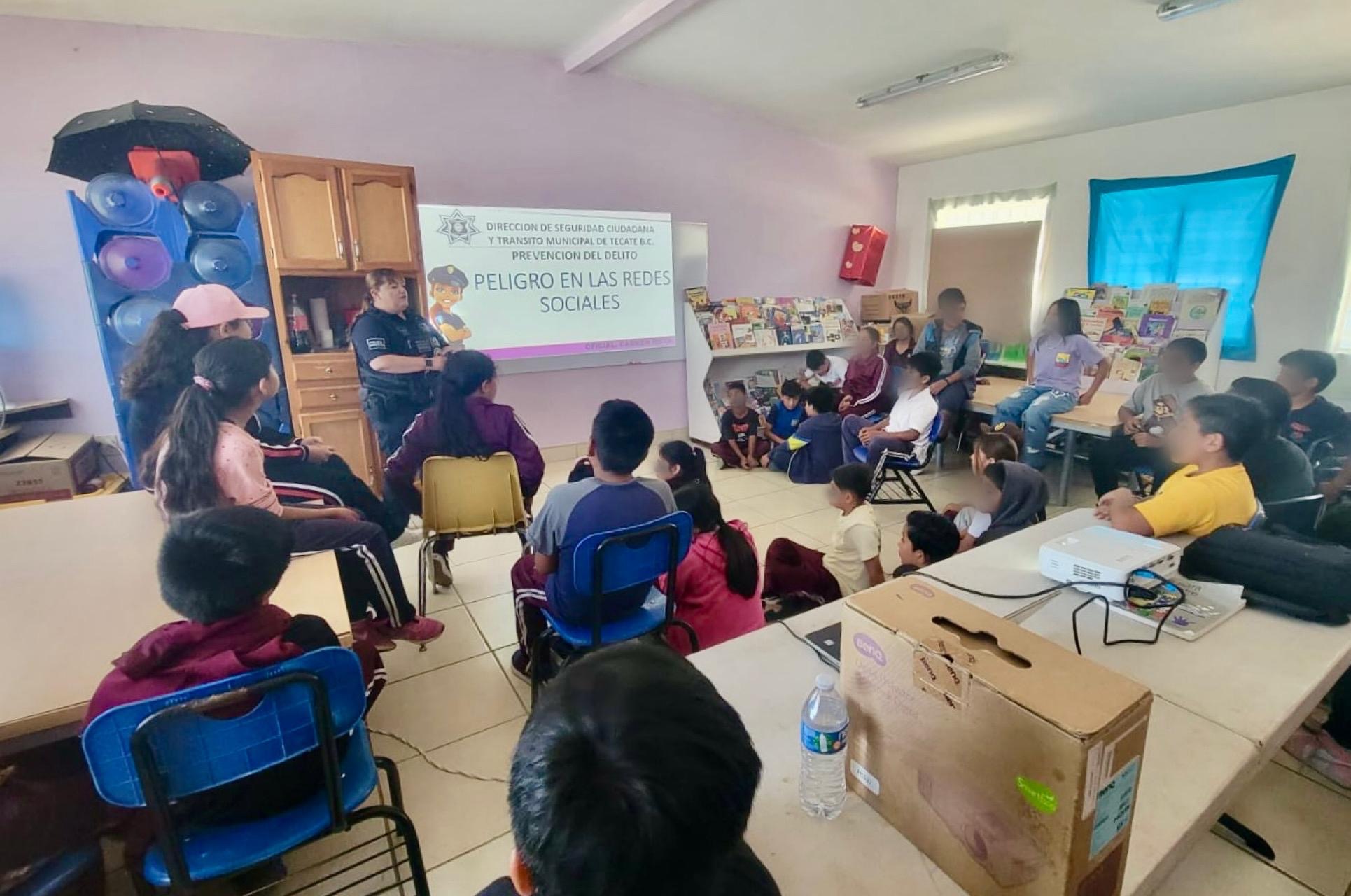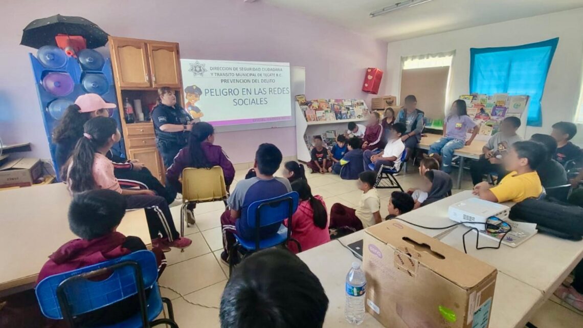 Tecate, Baja California a 18 de junio de 2025.– Con el objetivo de fomentar una cultura de autocuidado y uso responsable de las redes sociales entre la niñez tecatense, el Gobierno de Tecate, a través del Departamento de Prevención del Delito de la Dirección de Seguridad Ciudadana y Tránsito Municipal, continúa llevando a las escuelas programas educativos enfocados en la prevención y el bienestar infantil.