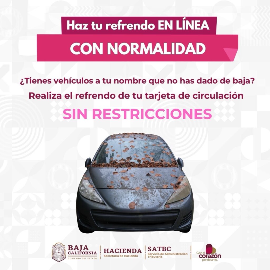 MEXICALI, B.C. El Servicio de Administración Tributaria de Baja California (SATBC) informa que el refrendo de la tarjeta de circulación se puede realizar sin ninguna restricción.