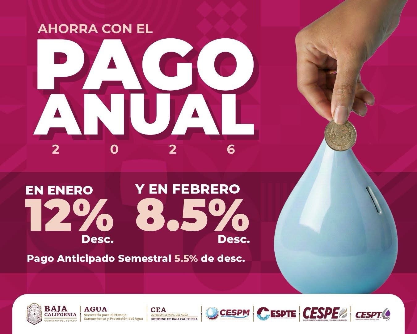 -Descuentos de 12% en enero y 8.5% en febrero al pagar el servicio de agua de todo el año