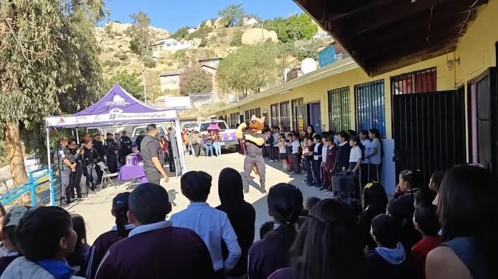 Tecate.- Como parte de la estrategia de atención integral, prevención del delito, y contención de riesgos en entornos escolares de la entidad, la Secretaría de Seguridad Ciudadana de Baja California (SSCBC) acercó a estudiantes y padres de familia herramientas de protección y orientación en la Escuela Primaria Estatal Francisco Ferreiro Salcido, en la colonia El Mirador.