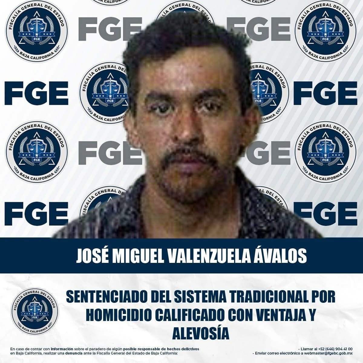 La Fiscalía General del Estado (FGE) logró que se dictara una sentencia de 50 años de prisión en contra de José Manuel Valenzuela Ávalos, tras ser declarado culpable del delito de homicidio calificado con ventaja y alevosía, por hechos ocurridos en octubre de 2004.