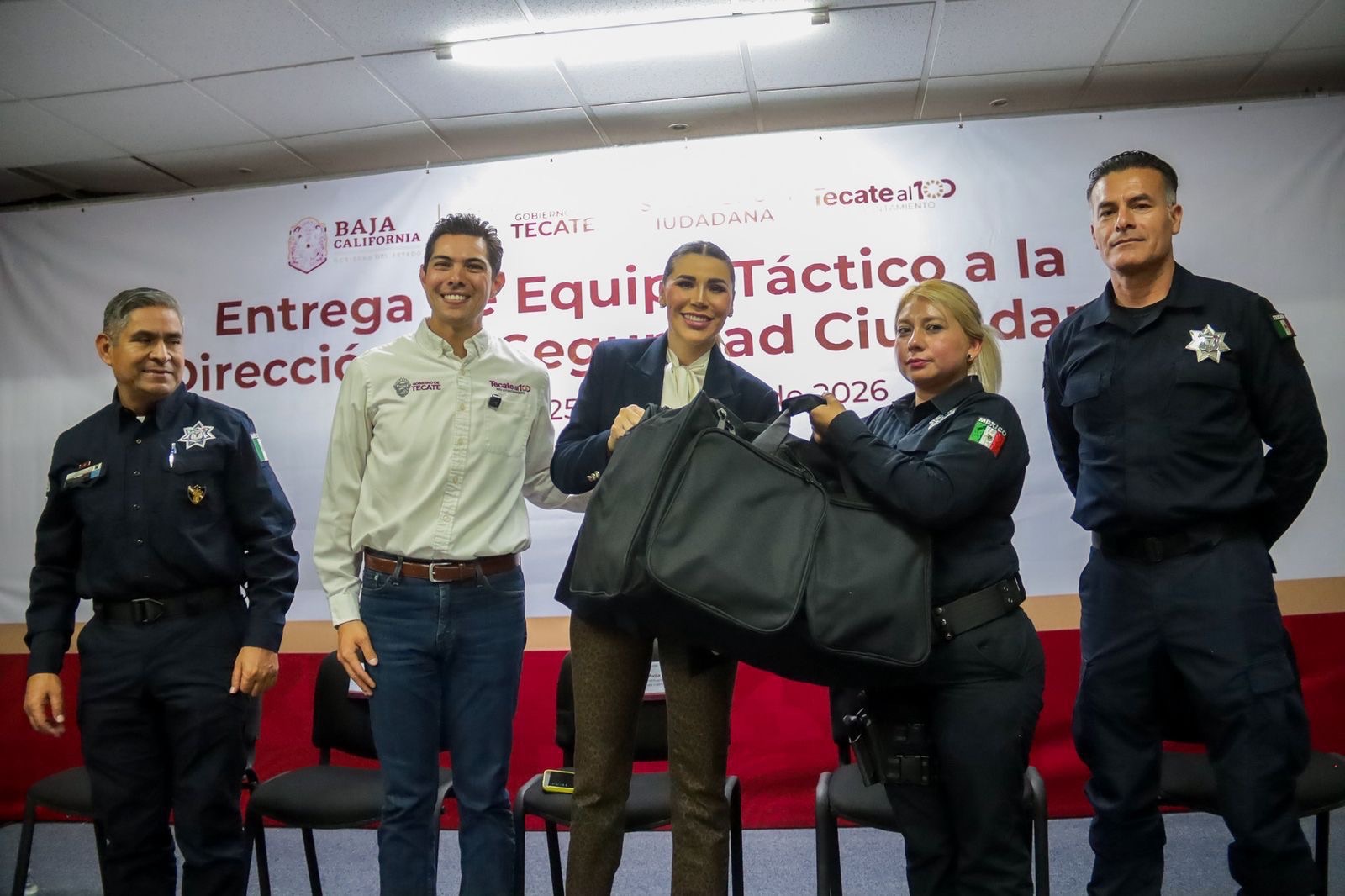 Tecate, Baja California, 25 de febrero de 2026.– La Policía Municipal de Tecate recibió equipo táctico por parte del Gobierno del Estado, encabezado por la gobernadora Marina del Pilar Ávila Olmeda, como parte de las acciones coordinadas para continuar fortaleciendo la seguridad y brindar mayores condiciones de protección a quienes diariamente resguardan la tranquilidad de las familias tecatenses.