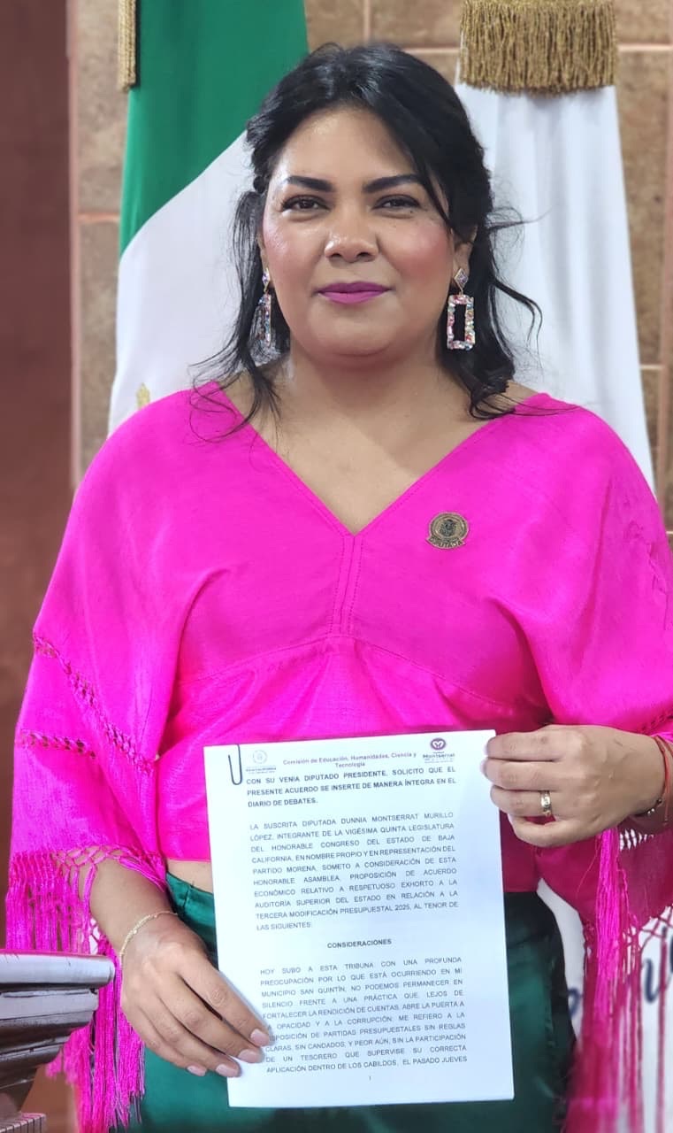 Mexicali, B.C., viernes 3 de octubre de 2025.- “Nuestro deber es claro: vigilar, legislar y exigir que cada peso del erario tenga nombre, apellido y destino, y que ese destino se traduzca en bienestar real para nuestras comunidades”, indicó la Diputada Dunnia Montserrat Murillo López.