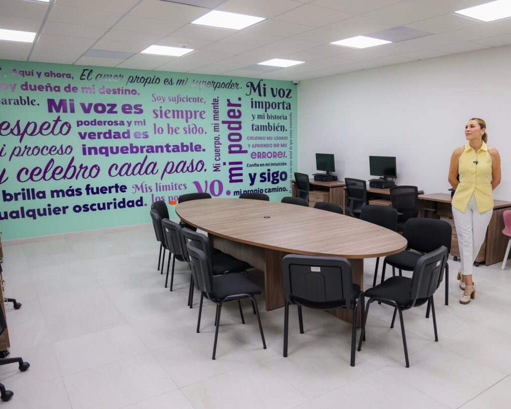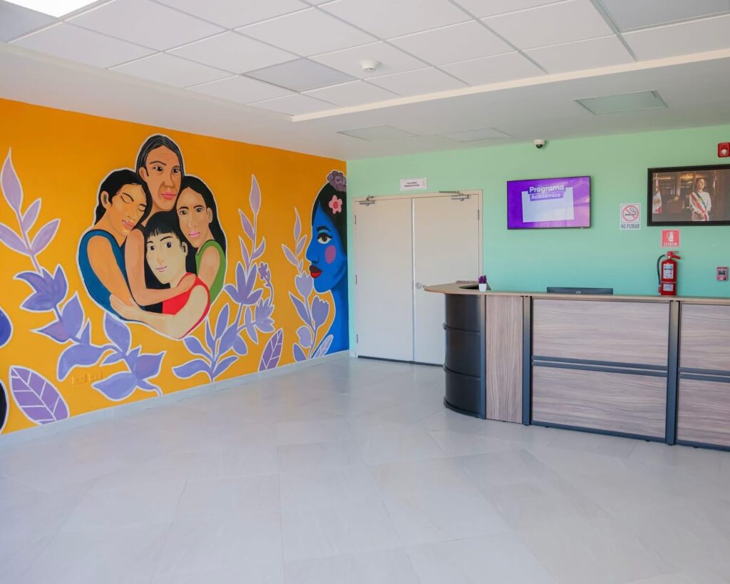 Este espacio cuenta con siete salas de atención, una de ellas especializada para niñas, niños y adolescentes, además de estar equipada con cámaras Gesell, consultorio médico, sala de empoderamiento con capacidad para 100 personas, talleres productivos, sala de cómputo, ludoteca, lactario y una boutique.