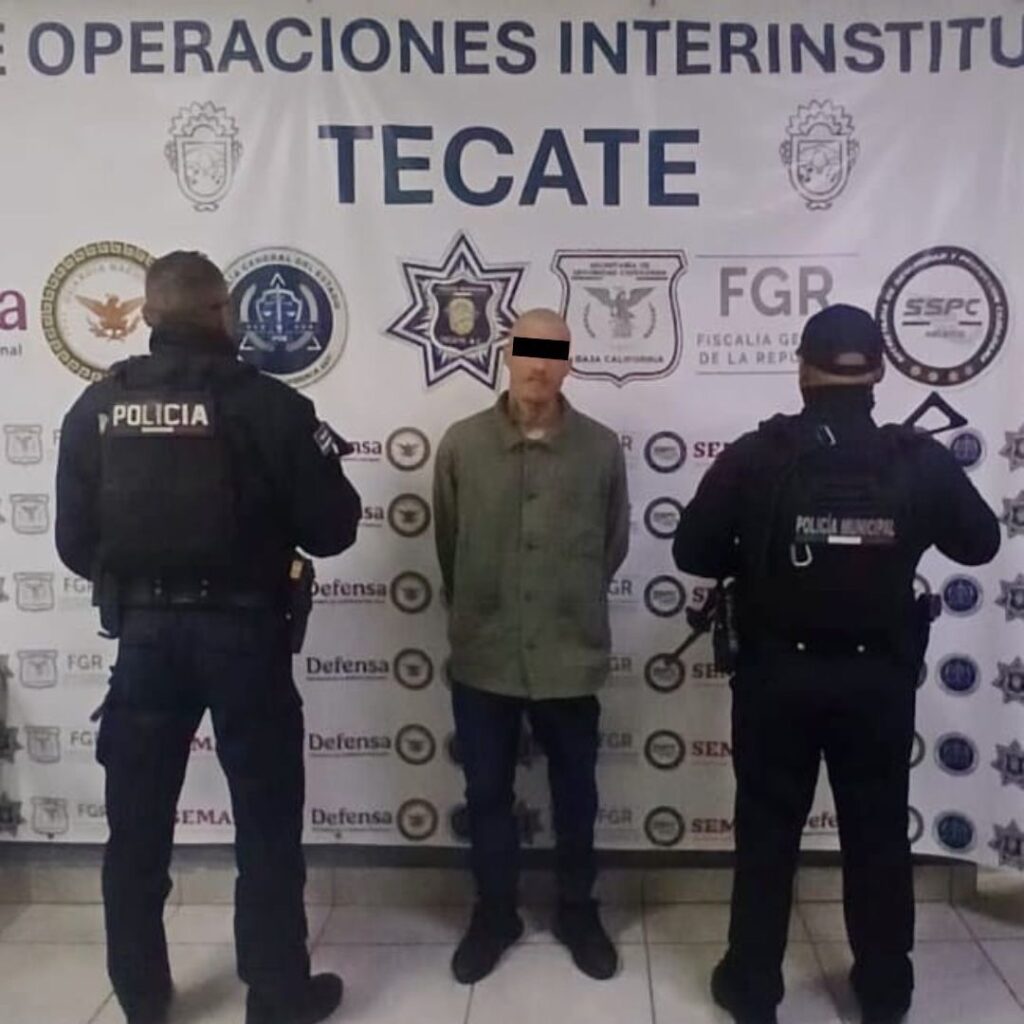 Tecate, Baja California.– Como parte de las acciones permanentes de prevención, vigilancia y proximidad social, la Dirección de Seguridad Ciudadana y Tránsito Municipal, a través del Departamento de Operaciones Policiales (DOP), aseguró a un individuo que contaba con una orden de aprehensión vigente, derivado de la atención inmediata a un reporte ciudadano en la Zona Centro.