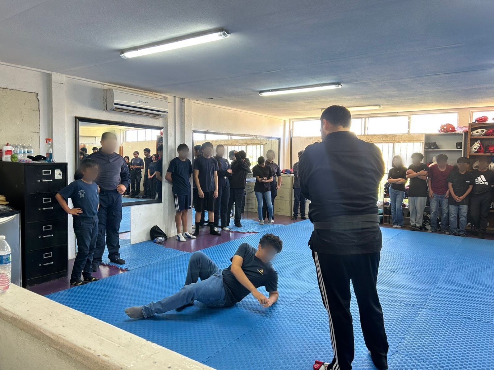 En esta jornada, desarrollada por el Departamento de Prevención del Delito, 28 cadetes participaron en una sesión especializada donde conocieron y practicaron técnicas de defensa personal mediante el arte marcial japonés “ninjutsu”, actividad impartida por el instructor Erick Ortiz en el gimnasio Mondragón del IMDETE. Este tipo de entrenamientos fortalecen no solo las capacidades físicas, sino también la disciplina, el autocontrol y la toma de decisiones responsables.
