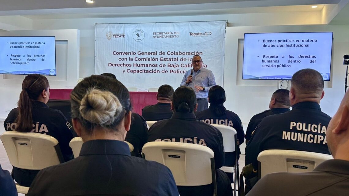 Tecate, Baja California a 10 de marzo de 2026.- Como parte de las acciones permanentes para fortalecer la profesionalización policial y garantizar un servicio público basado en el respeto a la dignidad de las personas, elementos de la Dirección de Seguridad Ciudadana y Tránsito Municipal de Tecate participaron en una capacitación en materia de atención institucional y respeto a los derechos humanos.